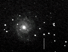 Obwohl die Supernova am Abendhimmel stand, gelangen nur Enskonatus (4), Kriebel (4) und Lange (2) positive visuelle Beobachtungen. Jörg Schirmer nahm mit einer CCD-Kamera die Galaxie zusammen mit dem neuen Stern auf (Abb. 4).